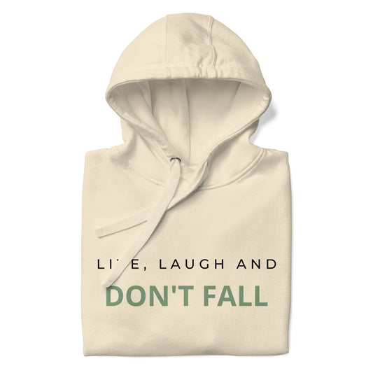 Live, Laugh, and Don’t Fall Premium Hoodie, Unisex