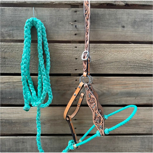 Tooled Lariat & Leather Hybrid Halter With 10' Lead