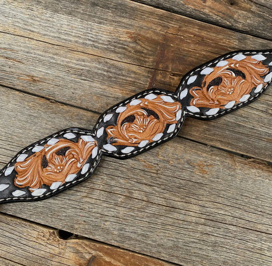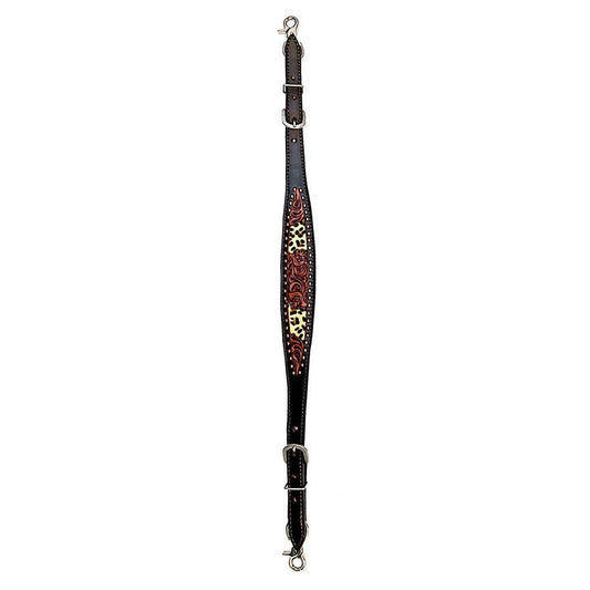 Tooled Leather Wither Strap – Cheetah Print with Metal Dot Accents