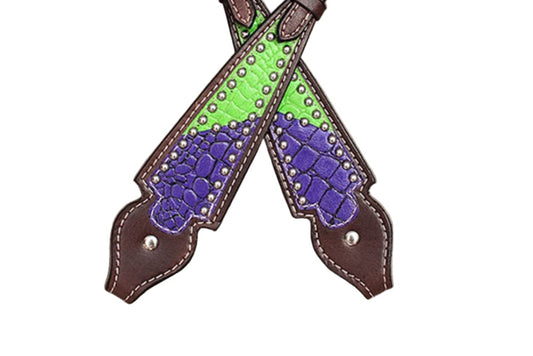 Single Ear Headstall – Green & Purple Vinyl Overlay with Metal Dots