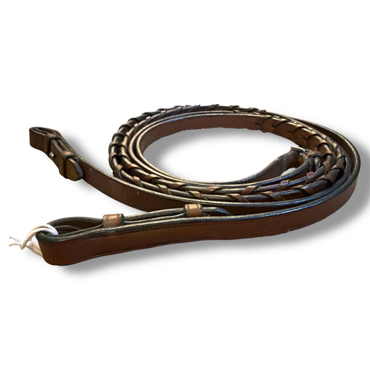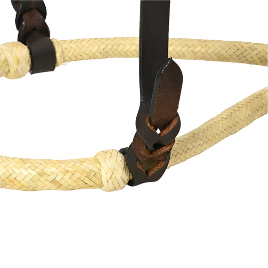 Leather Headstall with Rope Side Pull & Matching Romel Reins – Horse Size