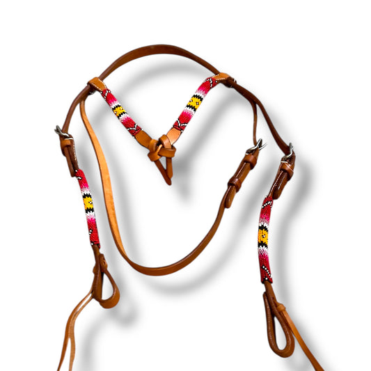 Browband Headstall – Beaded Overlay with Futurity Knot Browband in Light Oil Leather