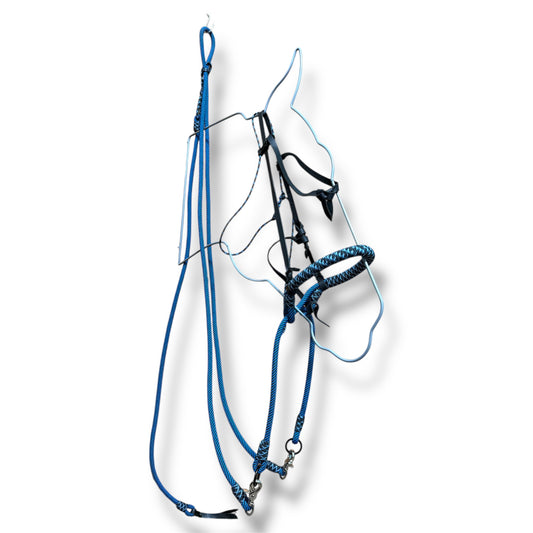 Leather Headstall with Rope Side Pull & Matching Split Reins – Horse Size